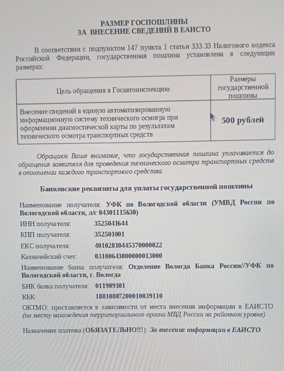В связи с вступлением в силу с 01.09.2025г. изменений от 31.07.2025г. в Федеральном законе 270 перед прохождением технического осмотра необходимо уплатить государственную пошлину в соответствии с приведенным ниже порядком: